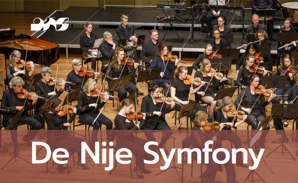 Symfonische muziekprojecten organiseren, dat is de doelstelling van Stichting De Nije Symfony. Amateurs uit heel Noord Nederland spelen mee in het orkest. Gedurende enkele weken wordt een aantal dagen geoefend op het repertoire en dan volgen de concerten. De deelnemers zijn allen geselecteerd uit bestaande netwerken zodat kwaliteit en inzet vanzelfsprekend zijn. De Nije Symfony is ook de bedenker en organisator van dit evenement. De stichting is opgericht in 2020 en maakte haar eerste productie, in coronatijd, in 2021 met het Saint-Saënsfestival en een jaar later zongen met Oekraïense vluchtelingen Mozarts Requiem en speelden we de 5e symfonie van Sjoskatovitsj. Eén of twee keer per jaar worden er nieuwe projecten georganiseerd met dit orkest. Plannen genoeg.
